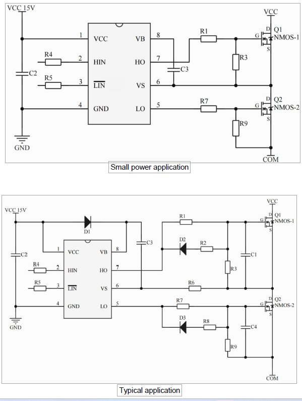 •主要特點:U3115E柵極驅動供電范圍從9到20v, VCC欠壓保護,3.3V, 5V和15V輸入邏輯兼容,交叉傳導預防邏輯,兩個通道的傳播延遲匹配