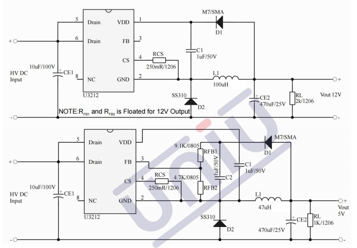 •產品描述:U3212是一款高性能低成本PWM控制功率器,適用于離線式小功率降壓型應用場合,外圍電路簡單、器件個數少。同時產品啟動模塊內置高耐壓MOSFET可提高系統浪涌耐受能力。與傳統的PWM功率開關不同,U3212內部無固定時鐘驅動MOSFET,系統開關頻率隨負載變化可實現自動調節。同時芯片采用了多模式PWM控制技術,有效簡化了外圍電路設計,提升線性調整率和負載調整率并消除系統工作中的可聞噪音。此外,芯片內部峰值電流檢測閾值可跟隨實際負載情況自動調節,可以有效降低空載情況下的待機功耗。U3212是一款高性能低成本PWM控制功率器,適用于離線式小功率降壓型應用場合,外圍電路簡單、器件個數少。同時產品啟動模塊內置高耐壓MOSFET可提高系統浪涌耐受能力。。U3212集成有完備的帶自恢復功能的保護功能:VDD欠壓保護、逐周期電流限制、輸出過壓保護、過熱保護、過載保護和VDD過壓保護等。